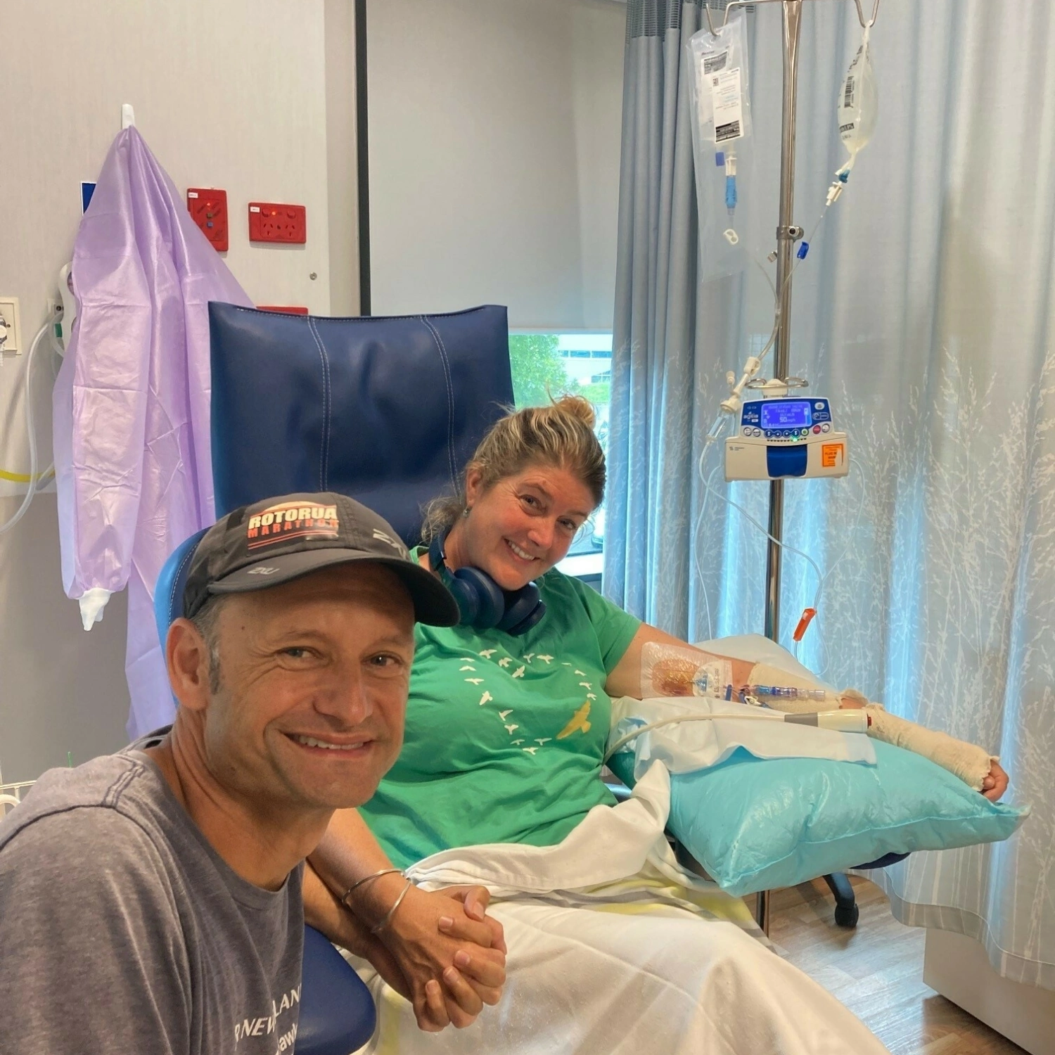 Helen was started on MATRix chemotherapy at Middlemore Hospital. “I did one week in hospital, two weeks at home, and that rotated five times without stopping.”